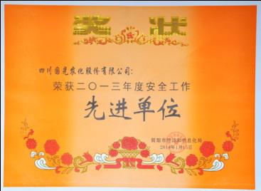 公司榮獲簡陽市經(jīng)信系統(tǒng)2013年度安全工作先進單位