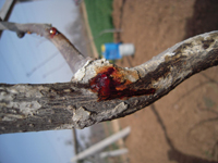(3)春季管理:枝蔓發病,剪除枝條;主桿發病,刮除病斑,涂抹殺細菌藥劑。若發病過于嚴重,將挖除植株,當場燒毀。