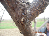 冬季在樹體病枝上越冬,或者隨病枝病葉等殘體在土壤中越冬;第二年春季溫度4-20攝氏度時發病,3-4月最為嚴重,到5月份隨氣溫升高而減輕。