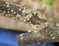(2)藥劑防治根據介殼蟲的各種發生情況,在若蟲盛期噴藥。因此時大多數若蟲多孵化不久,體表尚未分泌蠟質,介殼更未形成,用藥仍易殺死。