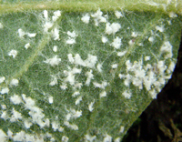 以成蟲、若蟲群集在葉背、嫩梢上刺吸危害,棲息時頭翹起,有時可見數十頭群集在新梢上,排列成一條直線;引起被害植株發生煤污病或嫩梢萎縮,畸形等,嚴重影響植株的生長和發育。