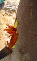 2.除卵、滅幼蟲:7-8 月份是成蟲產卵時間,成蟲產卵時在樹干上做“川”字或“U”字型刻槽,產卵于其中,可用石塊砸或用尖刀將卵挑出刺破即可。初孵幼蟲為害樹皮處有黃色膠質物流出,用小刀挑開皮層,刺殺幼蟲。