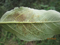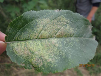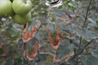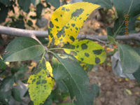 不同蘋果品種的感病性有明顯差異。高溫多雨,當氣溫在10-20℃,光照較強,癥狀較重。樹勢衰弱時,癥狀較重,幼樹比成株易發病。土壤干旱,水肥不足時發病重。