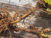發生規律:病原線蟲在土壤中的病根、病果殼蟲瘤內外越冬。主要靠病田土壤傳播,也可通過農事操作,水流傳播,調運帶病莢果可引起遠距離傳播。干旱年份易發病,雨季早、雨水大,植株恢復快發病輕。砂壤土或沙土,瘠薄土壤發病重。