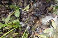 癥狀:病害多在花生成株期發生,主要為害莖部、果柄及莢果。發病初期病部變褐軟腐,其上出現波紋狀病斑。病斑表面長出一層白色絹狀絲菌絲體,在合適條件下菌絲蔓延至植株中下部莖桿,并在分枝間、植株間蔓延。土壤潮濕隱蔽時,病株周圍土表植物殘體和有機質上也布滿一層白色菌絲體。在菌絲體中形成很多球狀菌核。受害莖基部組織腐爛,皮層脫落,剩下纖維狀組織。病株葉片變黃,邊緣焦枯,最后枯萎而死,受侵害果柄和莢果長出很多白色菌絲,呈濕腐狀腐爛。