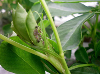 癥狀:成蟲群集為害花、嫩葉,致受害花畸形或死亡。
