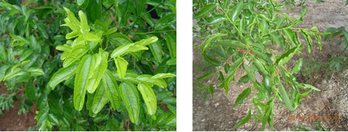2013年4月下旬,在陜西大荔楊家棟冬棗園,針對缺素冬棗樹,噴施國光絡微2次,間隔15天噴施一次,2013年5月20日,觀察缺素棗樹,葉片轉(zhuǎn)綠,棗吊生長正常,花蕾分化好。