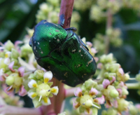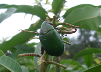 癥狀:金龜子的種類很多,危害芒果主要是銅綠麗金龜。銅綠麗金龜又名銅綠金龜子,是一種雜食性又是暴食性的害蟲,成蟲咬食花穗、嫩梢、幼果,食量大,數(shù)量多,危害嚴(yán)重。其幼蟲蠐螬俗稱雞蟲,是重要的地下害蟲。