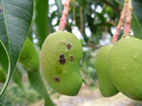 癥狀:薊馬是芒果產(chǎn)區(qū)梢期、花期和幼果期危害較為嚴(yán)重的害蟲之一。薊馬好吸食幼嫩組織。吸食果汁后,果表面起小疙瘩造成果皮粗糙,危害嚴(yán)重時候造成芒果失去商品性。危害較輕者也是芒果生產(chǎn)后期產(chǎn)生“露水斑”、“老年斑”的可能原因之一。