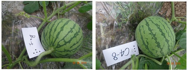 2015年4月,我們江西瑞金武陽鎮帥童無籽瓜上做了國光座瓜靈(0.1%氯吡脲)提高西瓜坐瓜率試驗示范。試驗結果表明:在西瓜雌花開放當天,用國光座瓜靈10毫升兌水1.5-2公斤,噴施瓜胎正反面,可明顯提高西瓜坐果率,用藥的西瓜生長良好,果型端正。